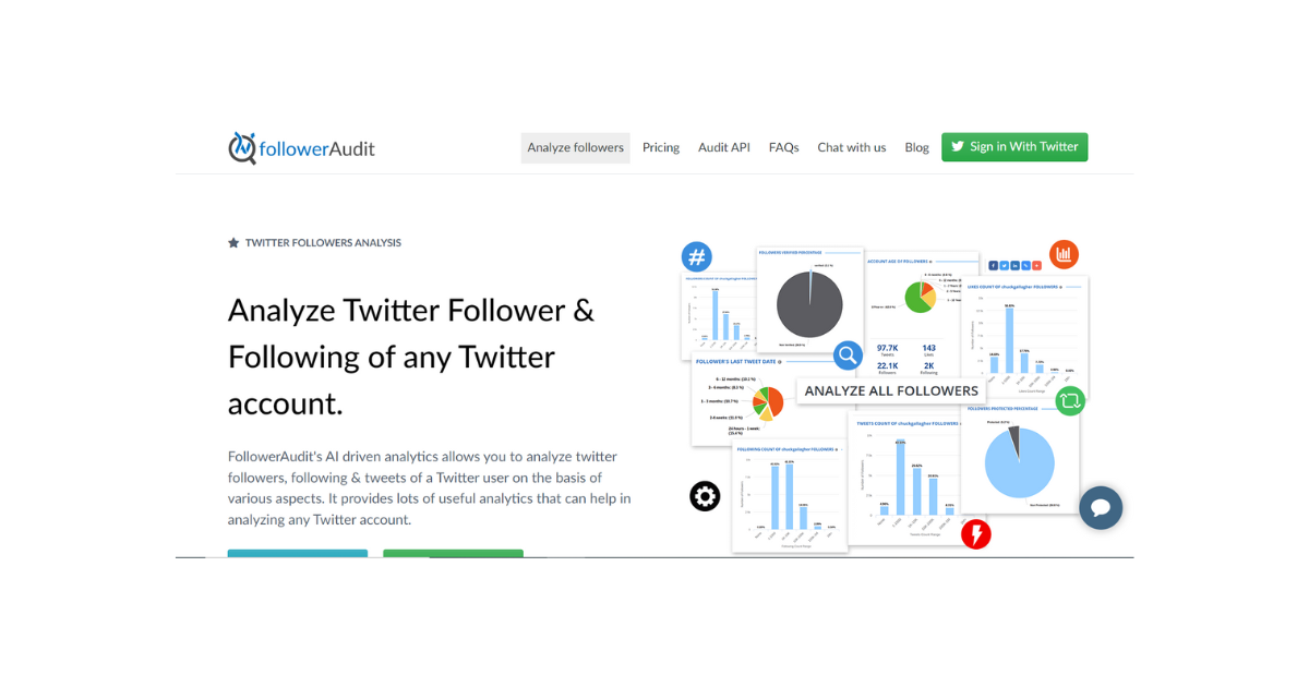 Esse plano gratuito permite que você execute duas auditorias diárias e emite resultados que podem ser baixados. No entanto, a conta que você está verificando deve ser pública. Se for, o FollowerAudit identificará o número exato de bots e contas inativas que compõem os seguidores falsos. Essa ferramenta também pode avaliar a credibilidade de uma conta.