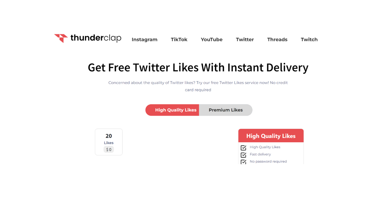 O Thunderclap é outro site que dá curtidas no Twitter sem cobrar nada. As vantagens de usar essa plataforma incluem não se inscrever com sua senha do Twitter e obter curtidas autênticas. Você pode confiar que o Thunderclap não fornecerá curtidas de contas inativas, falsas, de bots ou de spam.