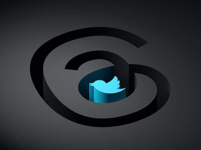 O logotipo azul do Twitter dentro do logotipo do Threads by Instagram.