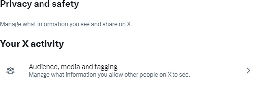 1. Selecione Privacy and Safety (Privacidade e segurança ) e, logo em seguida, Audience (Público), Media (Mídia) e Tagging (Marcação).