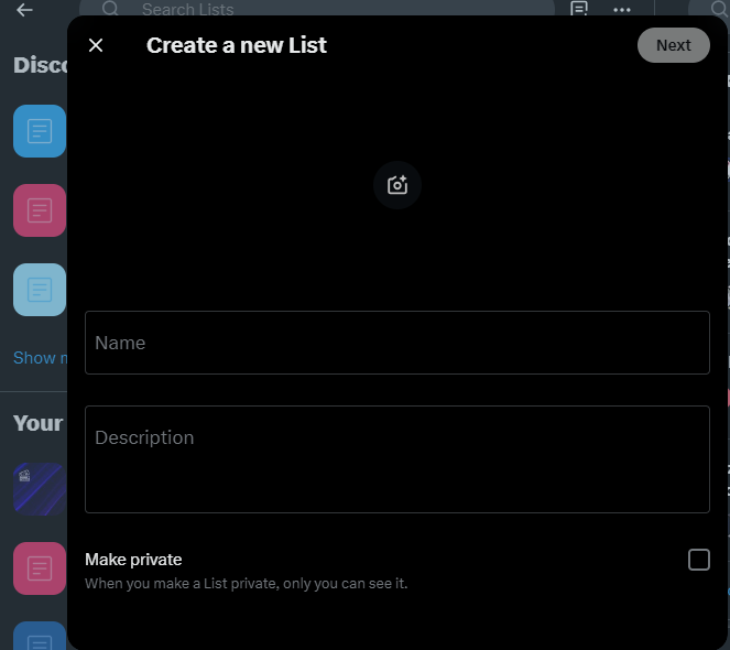 • Listas privadas: Uma lista privada é visível apenas para o criador, e outras contas não podem segui-la. Esse tipo de lista é útil para rastrear contas sem o conhecimento de outras pessoas.