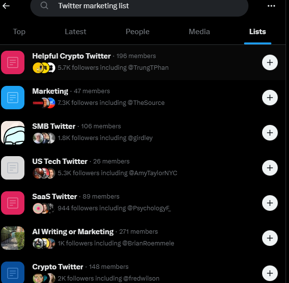 • Procure listas relacionadas ao seu setor, influenciadores ou interesses. Por exemplo, se você gosta de moda, crie ou siga listas de especialistas e designers de moda. Você também deve procurar listas que apresentem contas de alto perfil, como Elon Musk.