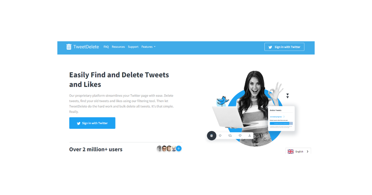 Limpar todo o seu histórico do Twitter não é uma tarefa fácil; é por isso que você precisa da ajuda de ferramentas de terceiros. O TweetDelete é uma dessas poderosas ferramentas baseadas na Web que limpam seu histórico na plataforma. Esse eficiente limpador do Twitter pode excluir até 3.200 tweets na versão gratuita. Isso inclui suas postagens e retuítes. Você pode se inscrever em um dos três planos pagos se tiver mais do que esse número.