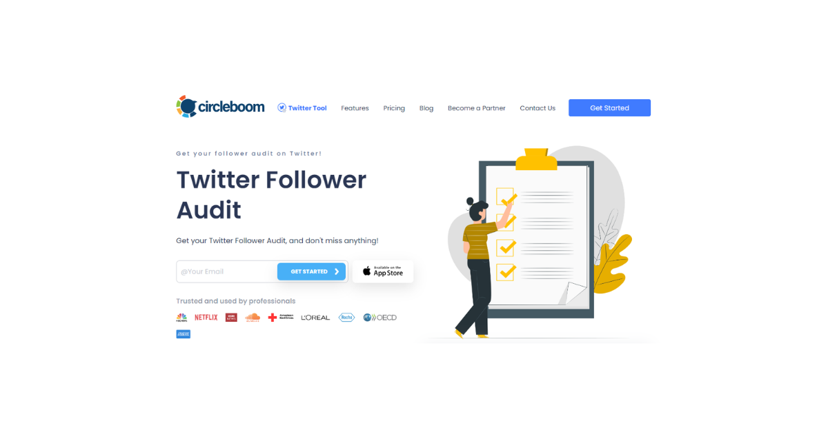 - Vá para o site da ferramenta de gerenciamento do Twitter do Circleboom e clique em "Get Started" (Iniciar) para se registrar com suas credenciais do Twitter.