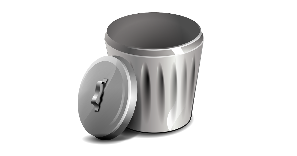 Uma imagem que ilustra uma lata de lixo de metal aberta e sua tampa ao lado.