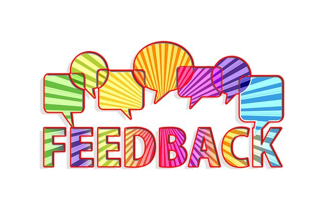 Das Wort "Feedback" in verschiedenfarbigen Buchstaben mit Meldungssymbolen darüber.