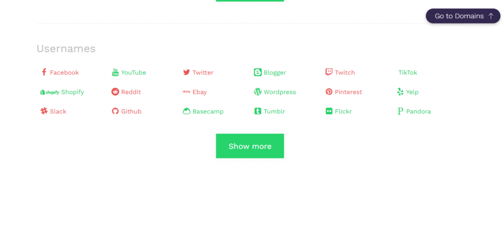 2. Pulsa Intro para realizar una consulta de búsqueda. La herramienta mostrará resultados de sitios de redes sociales y dominios con ese nombre.