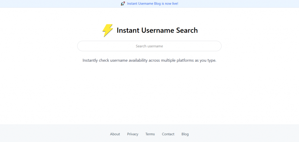 Instant Username Search es otra herramienta que muestra si un nombre de usuario está disponible en las principales redes sociales. Es rápida y eficaz, y se centra principalmente en la búsqueda de nombres de usuario sin servicios de marca adicionales. Sigue estos cuatro pasos para utilizar esta herramienta: