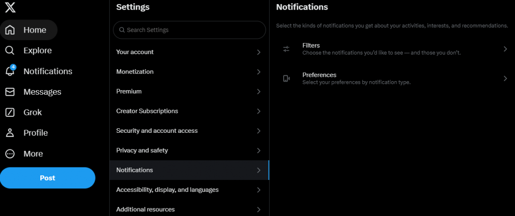 - Klik Preferensi untuk melihat jenis notifikasi yang Anda dapatkan di akun Anda.