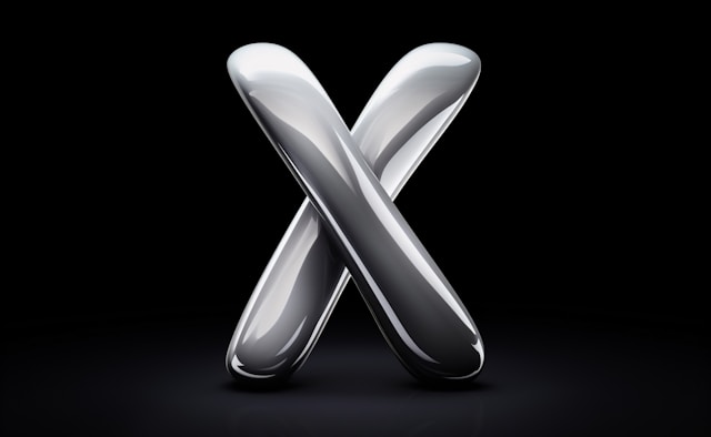 Siyah bir arka plan üzerinde metalik bir X simgesi.